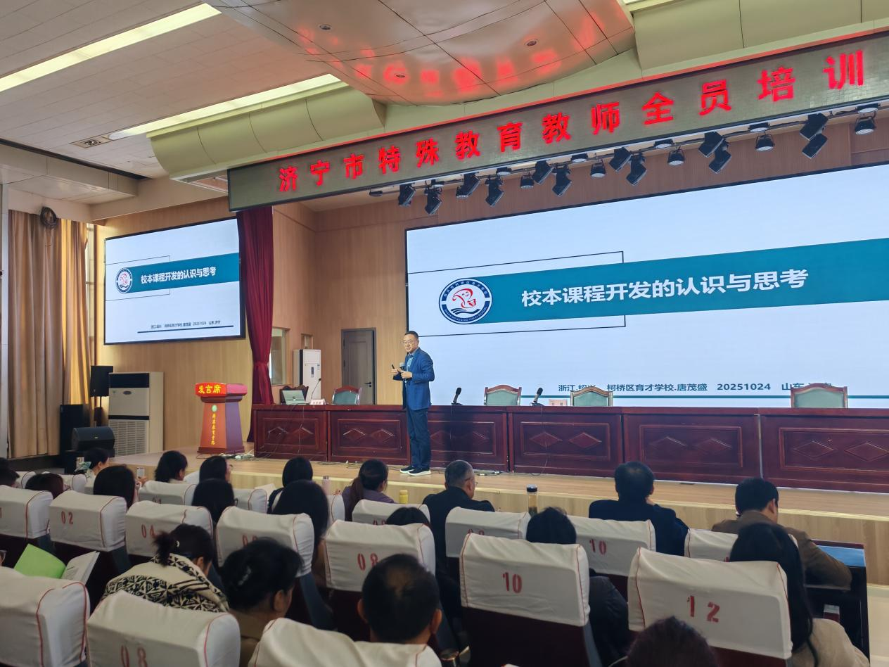 本次培训课程设置科学精准,内容前沿且富有深度。学院特邀多位国内特殊教育领域的知名专家与一线名校长进行专题授课。绍兴市柯桥区育才学校唐茂盛校长立足办学实际,深入分享了关于校本课程开发的认识与思考,并以“我的一天——培智学校生活课程”为生动案例,详细阐述了校本课程开发的具体实践路径与研究心得,为各特校的课程体系建设提供了宝贵借鉴。