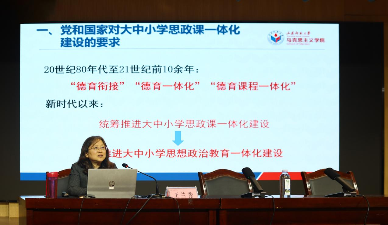 培训班特邀到省内外知名专家进行专题报告,为参训教师带来思政课教学的前沿理论与实践经验。济宁医学院马克思主义学院党委副书记、副院长秦茂森以《思政课的本质是讲道理:理论依据、文化基因与实践理路》为题,从历史与现实维度剖析思政课的本质特征。东北师范大学附属中学刘强博士结合一线教学,分享了《思政课一体化的教学改革探索与实践》。山东师范大学思政系主任王兰芳教授则从学术视角解读《大中小学思政课一体化的理论探索和实践推进》。三场报告既有理论高度,又贴近教学实际,为参训教师提供了系统性指导。