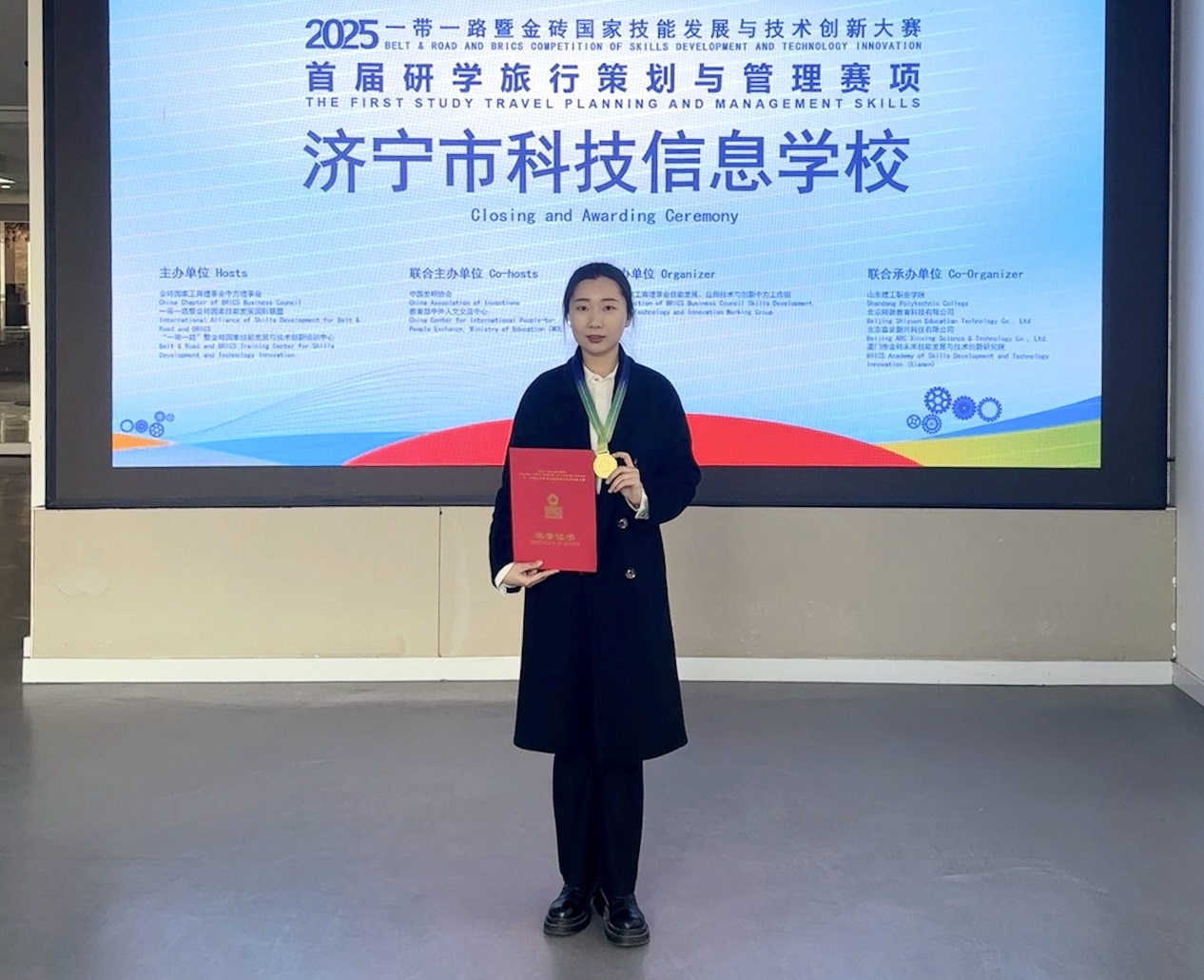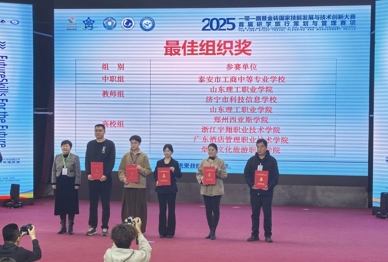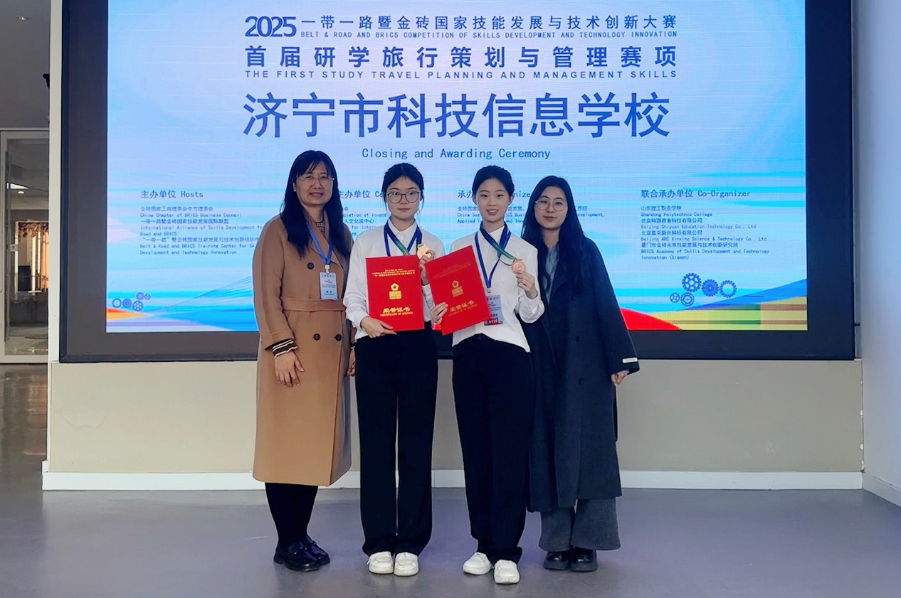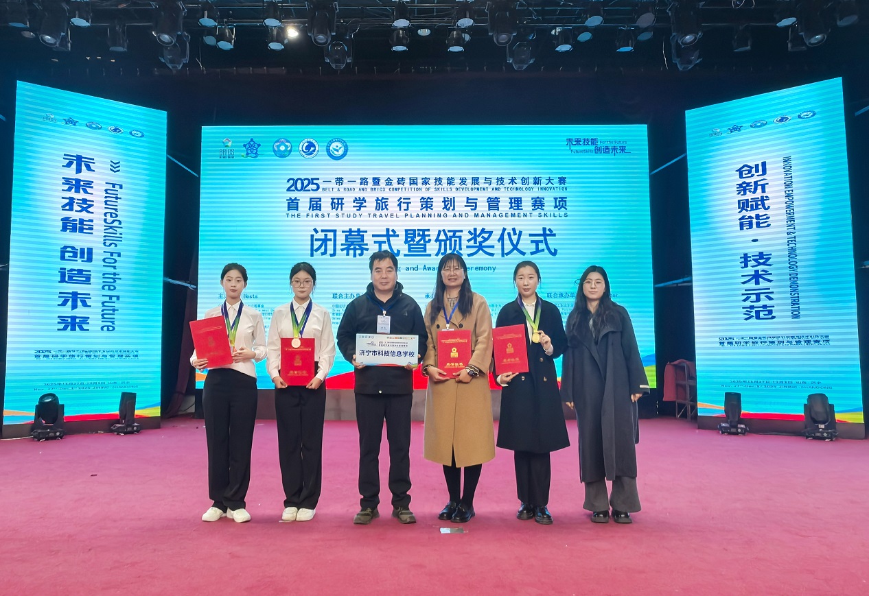 12月1日,2025“一带一路”暨金砖国家技能发展与技术创新大赛“首届研学旅行策划与管理”决赛在山东理工职业学院圆满落幕。在本次高手云集的赛事中,济宁教育学院(济宁市科技信息学校)师生凭借扎实的专业功底、娴熟的实操技能与出色的临场发挥,一路过关斩将,最终脱颖而出,斩获多项荣誉。